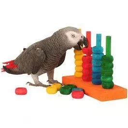 Apprenez à votre oiseau à reconnaître les couleurs et à les remettre en place Contient 28 anneaux en bois de couleur Hauteur : 16 cm
